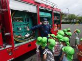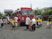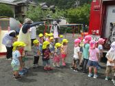 花火教室の後は、消防自動車に興味津々。